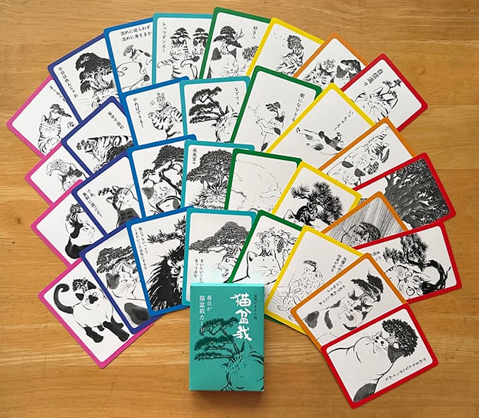 6.5×9cmの箱に32種の猫盆栽カードが入っています。